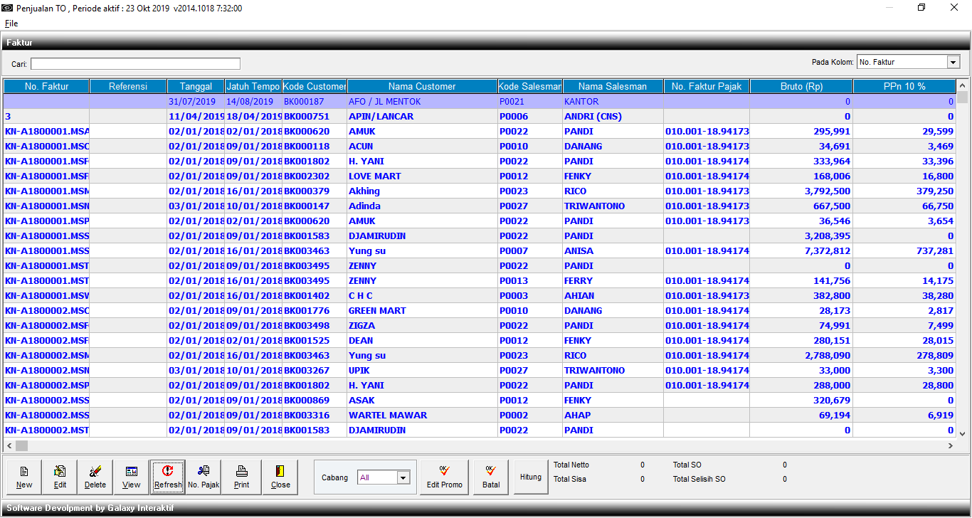 Menu ini merupakan kelanjutan dari proses SO, yakni bagian fakturis menginput Faktur TO dengan menarik SO yang telah dibuat oleh bagian Sales. Setelah input Faktur TO, secara otomatis barang digudang akan berkurang dan piutang customer tekait akan bertambah.