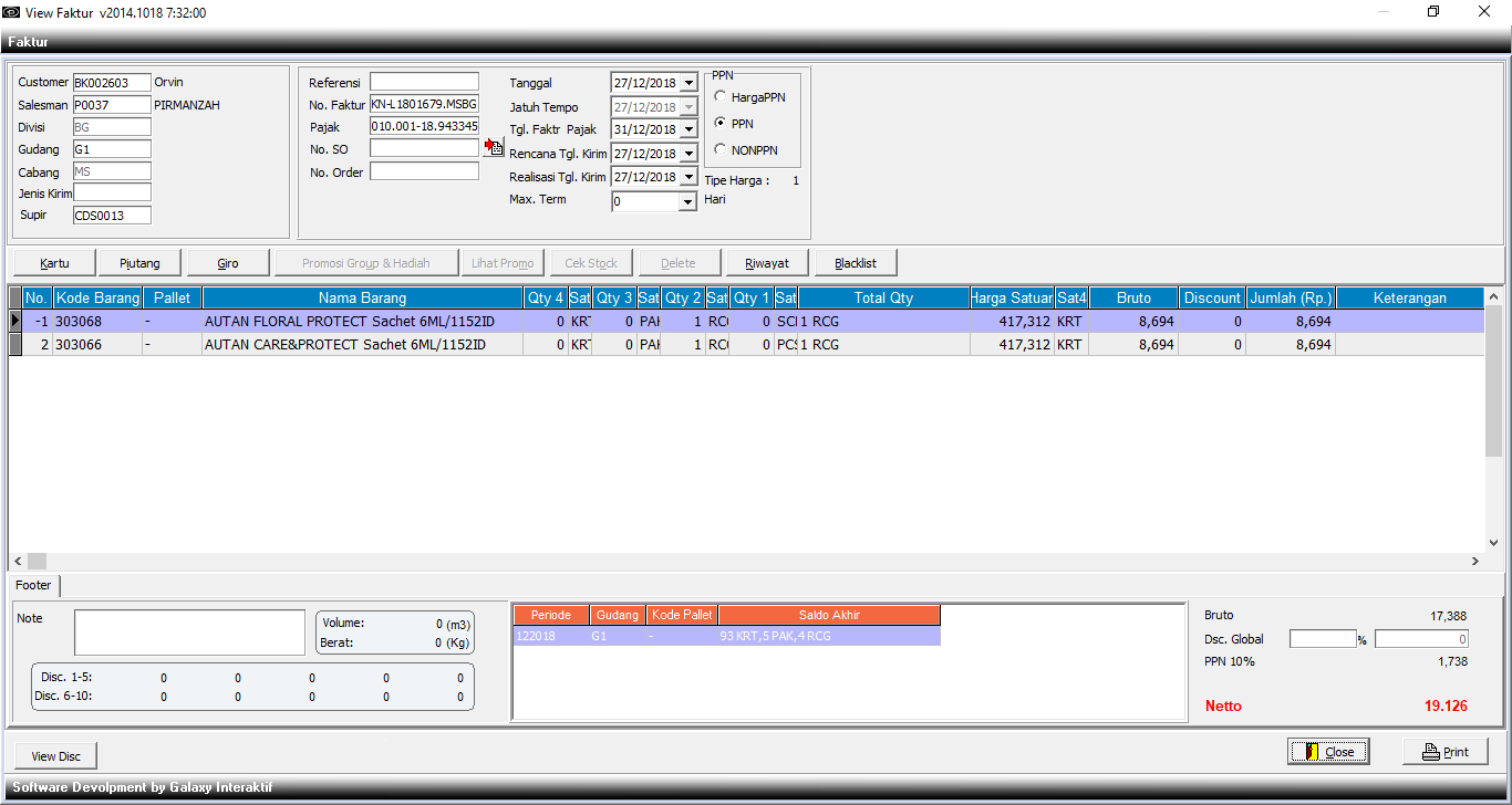 | PPN | Akan muncul otomatis sesuai dengan jenis PPN yang telah diisi pada master customer. |