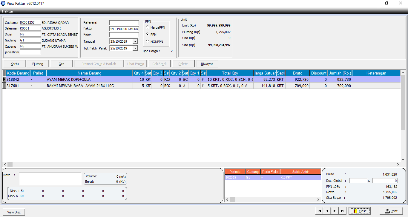 Akan muncul otomatis apabila kode gudang sudah diisi karena pada master gudang harus memasukkan kode cabang. |