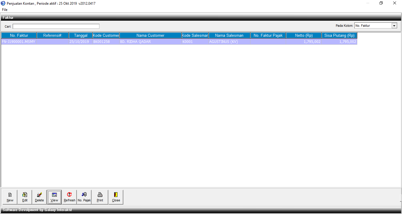 Akan muncul otomatis apabila kode salesman sudah diisi, karena pada master salesman harus memasukkan kode divisi. |
