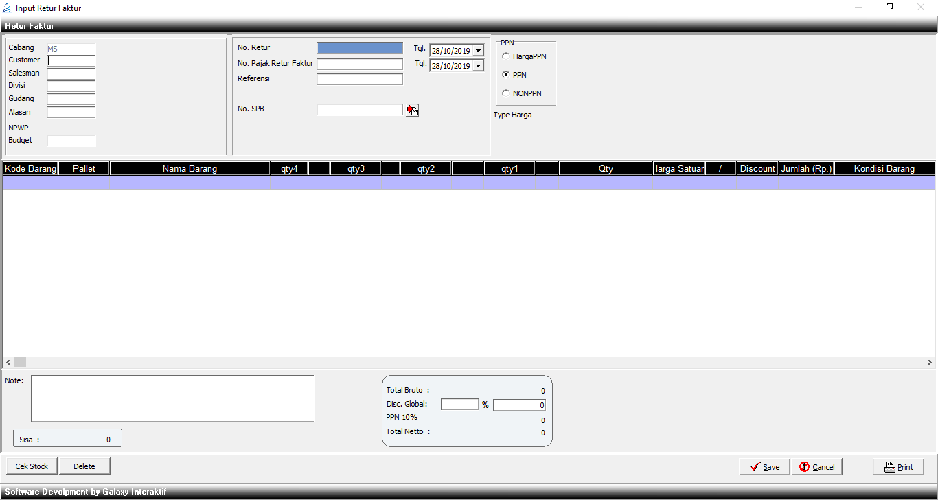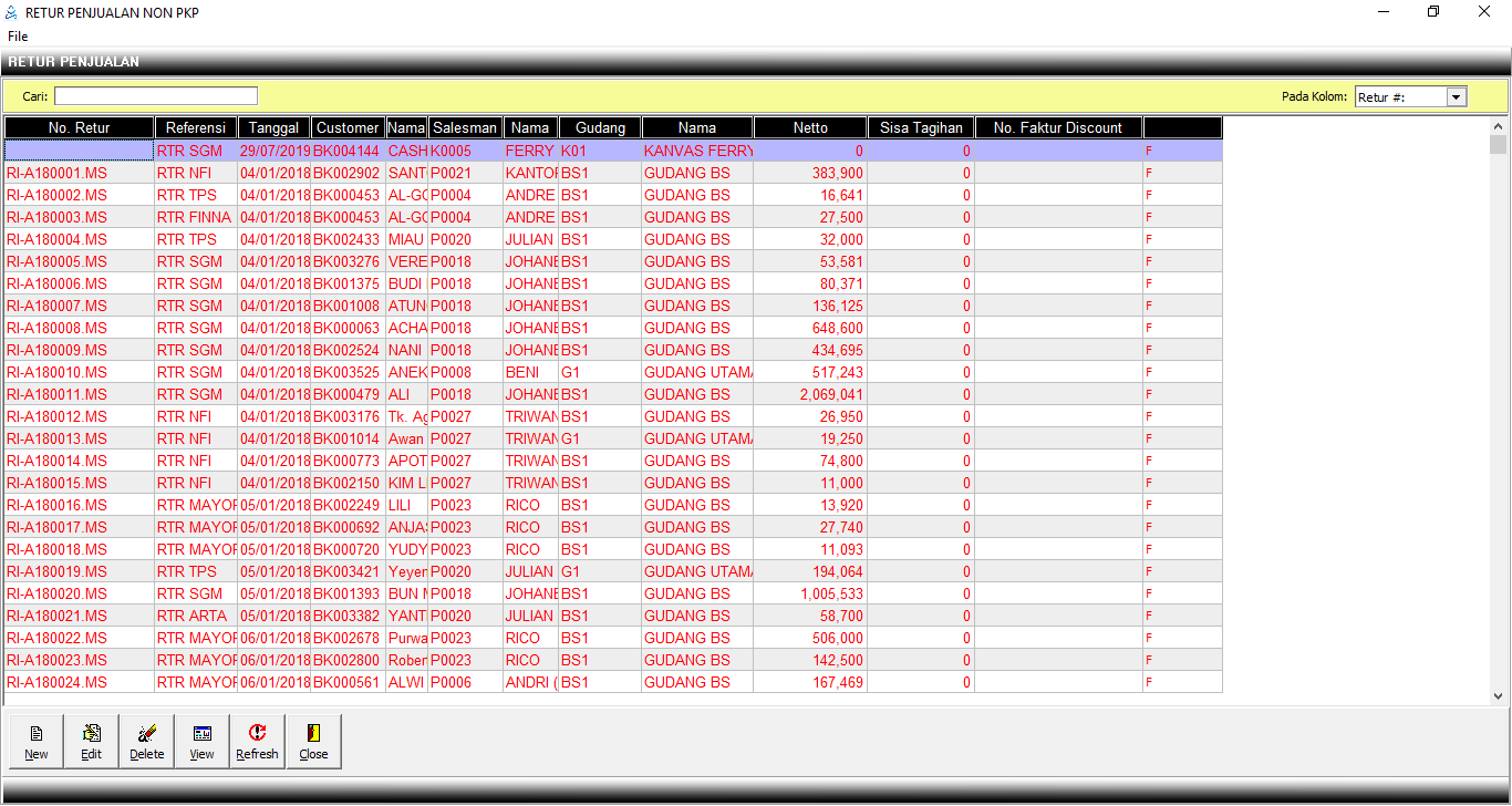 Menu ini digunakan untuk menginput retur apabila customer yang melakukan permintaan retur adalah customer yang bukan PKP.
