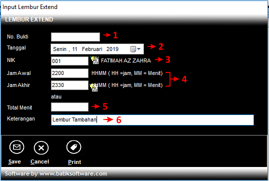 | 3 | NIK | Klik 2x untuk mengambil kode karyawan yang akan diisi lembur extend nya |