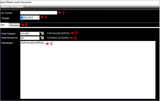 1 No.Award Muncul otomatis setelah data ini disimpan