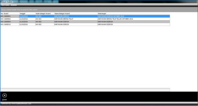 3. Maka tampil histori award yang didapat karyawan.