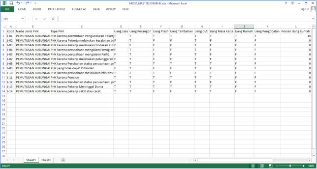 2. Buka template dengan nama M0037_MASTER JENISPHK.xlsx, *) nama template ini tidak boleh diubah.