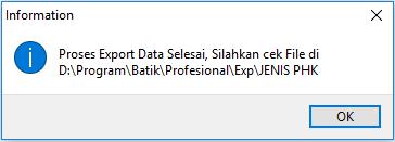 3. Setelah proses export selesai maka akan muncul pemberitahuan sebagai berikut. Klik OK untuk menutup pemberitahuan tersebut.