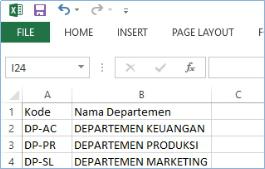 | A | Kode | Diisi kode departemen maksimal 5 karakter |