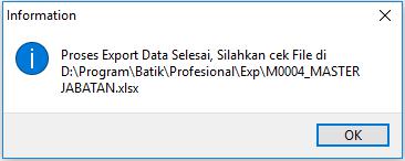 3. Setelah proses export selesai maka akan muncul pemberitahuan sebagai berikut. Klik OK untuk menutup pemberitahuan tersebut.