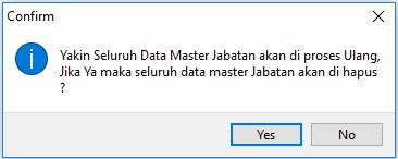4. Klik Proses untuk mulai melakukan proses import, maka akan tampil pemberitahuan sebagai berikut. Pilih Yes untuk melanjutkan (seluruh data master Jabatan yang lama akan terhapus) atau No untuk membatalkan.