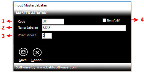 | 3 | Point | Diisi point service jika perusahaan menggunakan sistem Service Charge berdasarkan jabatan |